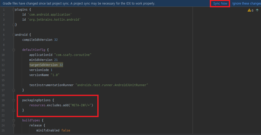 입력했다면 Sync Now를 눌러 프로젝트에 반영되도록 리빌드하도록 하자
