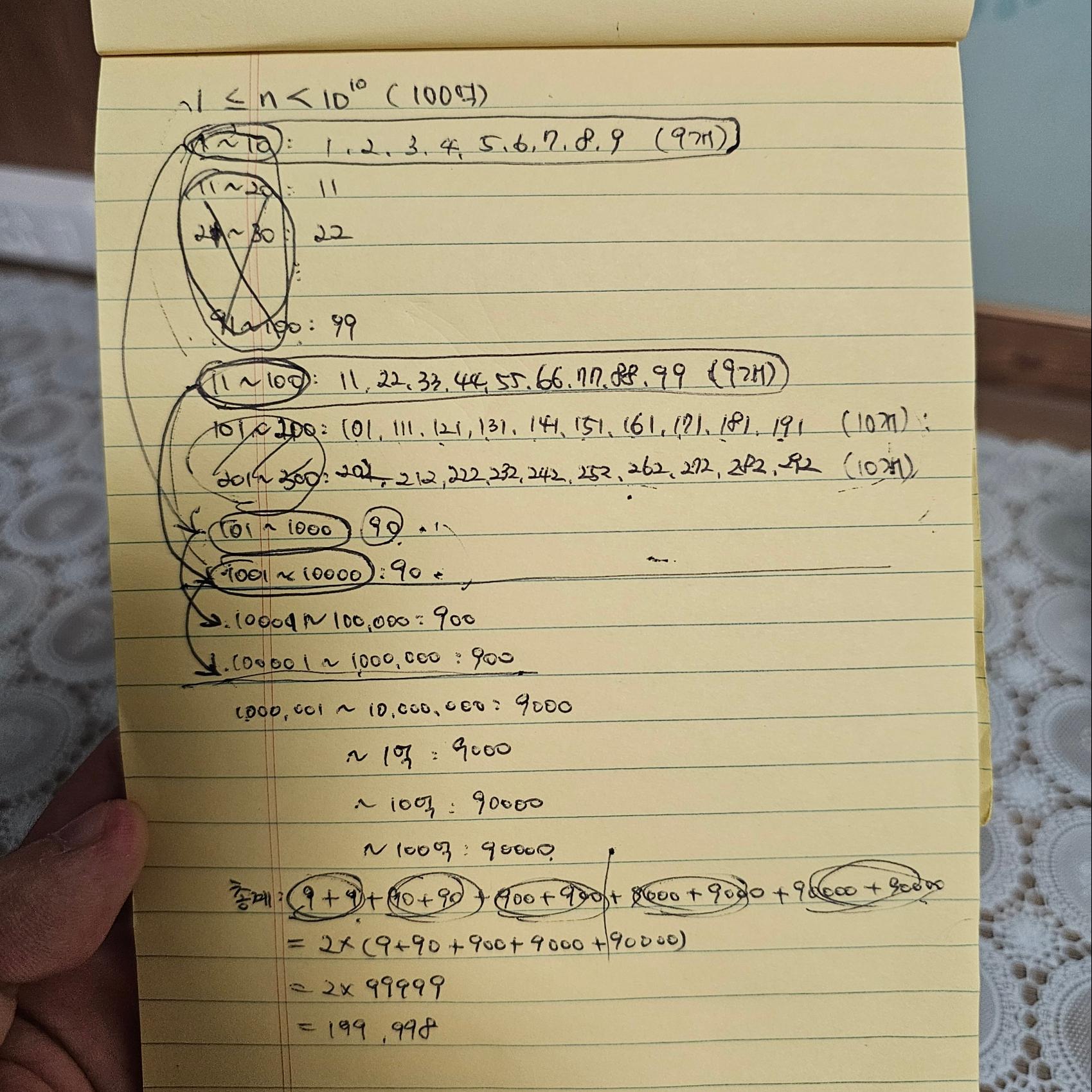 - 11~100 : (9개) 11, 22, 33, 44, 55, 66, 77, 88, 99