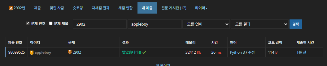| [Python] 백준 16395번: 파스칼의 삼각형 (0) | 2025.06.02 |