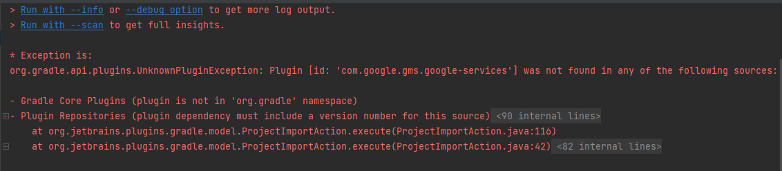 org.gradle.api.plugins.UnknownPluginException: Plugin [id: 'com.google.gms.google-services'] was not found in any of the following sources: